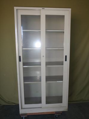 3段引き戸ガラス書庫 13372